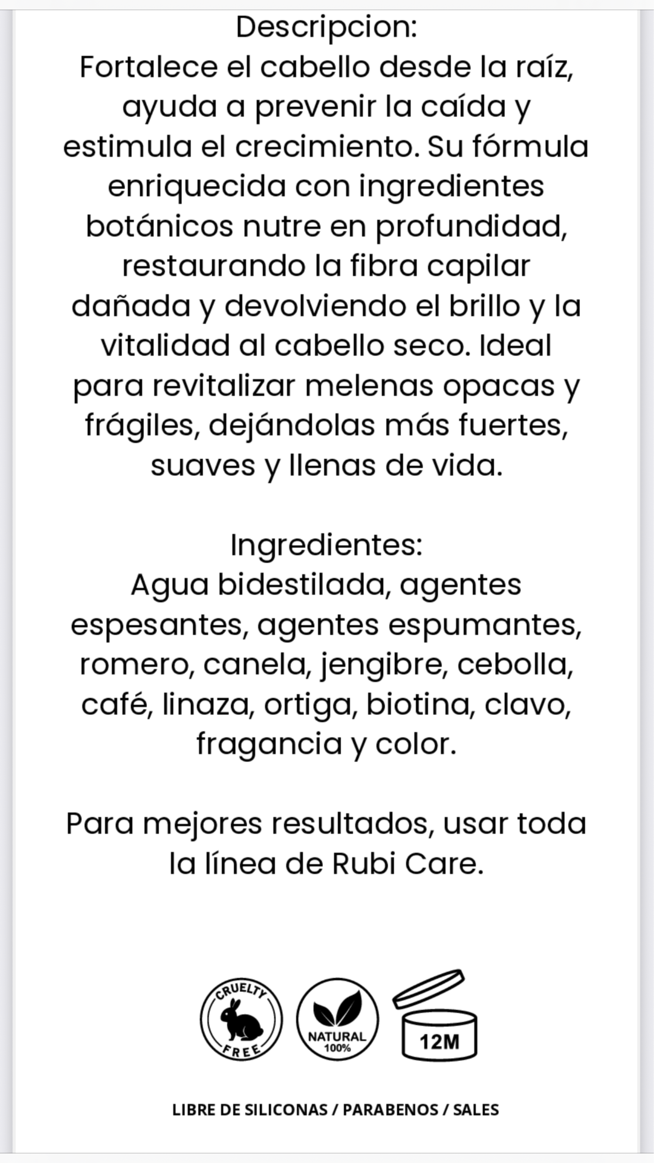 Estimula el crecimiento, evita la caida, y restaura el brillo natural del cabello seco y dañado.
