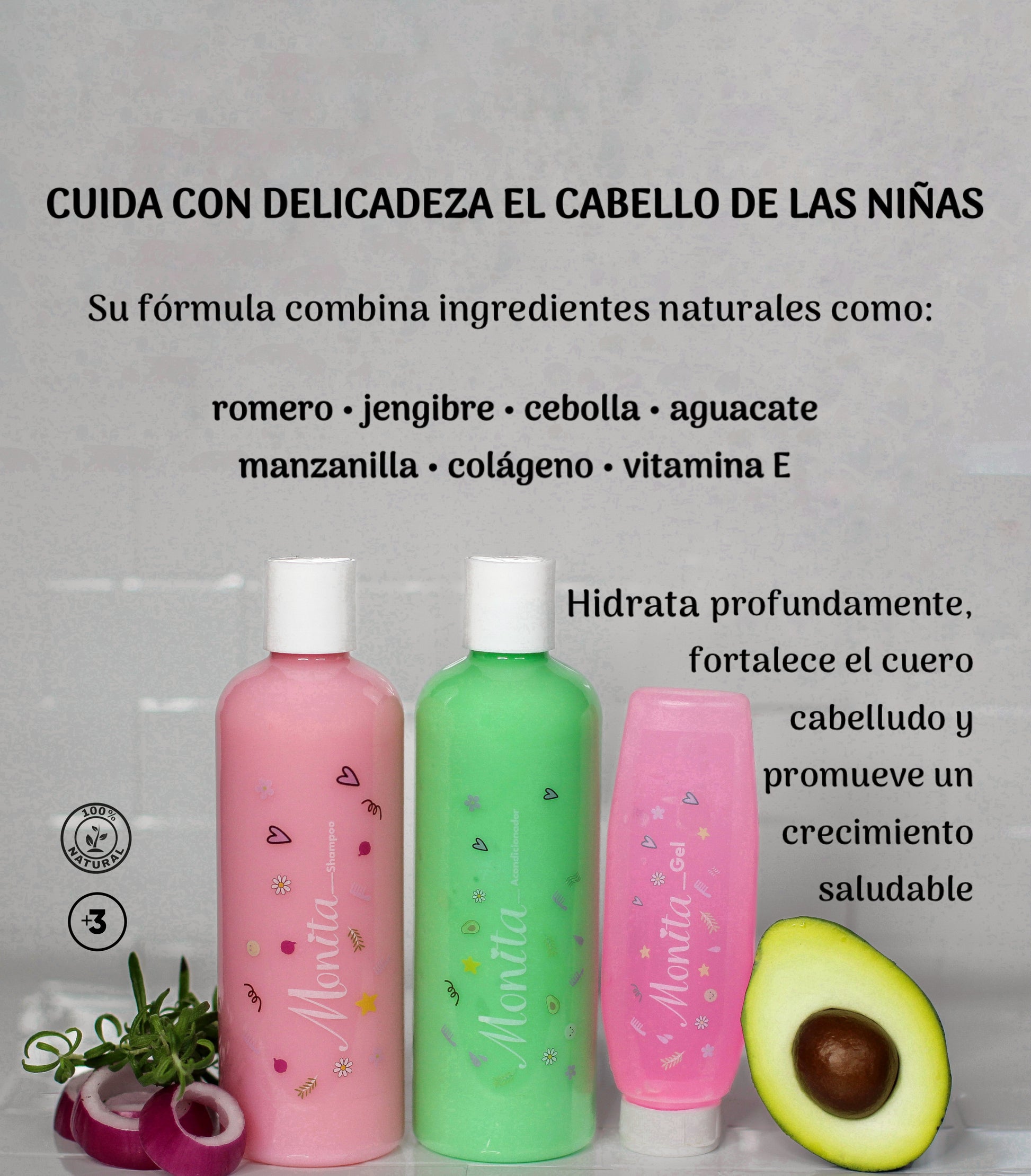 Formulado especialmente para el delicado cabello de las niñas. Su fórmula combina ingredientes naturales como cebolla, romero y jengibre, conocidos por fortalecer el cuero cabelludo y estimular un crecimiento saludable. Enriquecido con vitamina E y colágeno, que ayudan a mantener el cabello suave, brillante y fuerte.